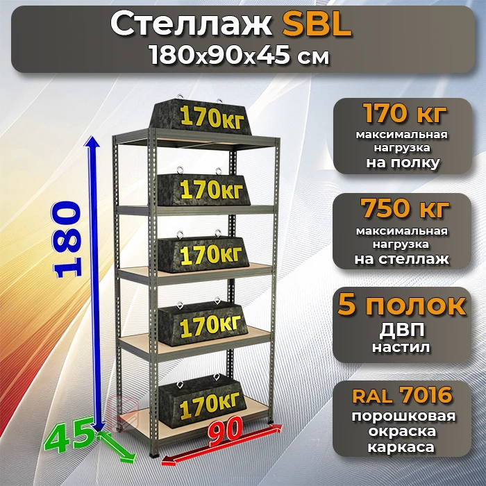 Стеллаж в гараж металлический SBL 180х90х45 5 полок